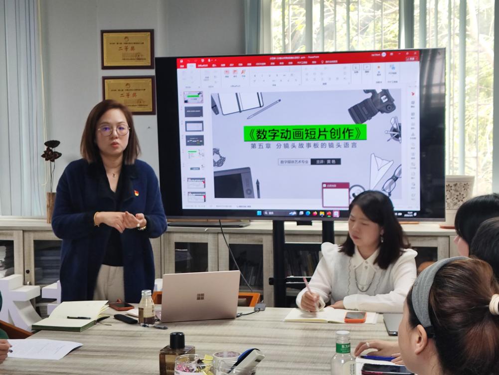 黄艳副教授以专业案例导入,围绕分镜头故事板的镜头语言展开专题讲解,系统讲授景别运用、拍摄角度、运动镜头、场面调度及镜头组接等核心内容,将动画影视语言理论与创作实践深度融合,授课条理清晰、重点突出、直观生动。